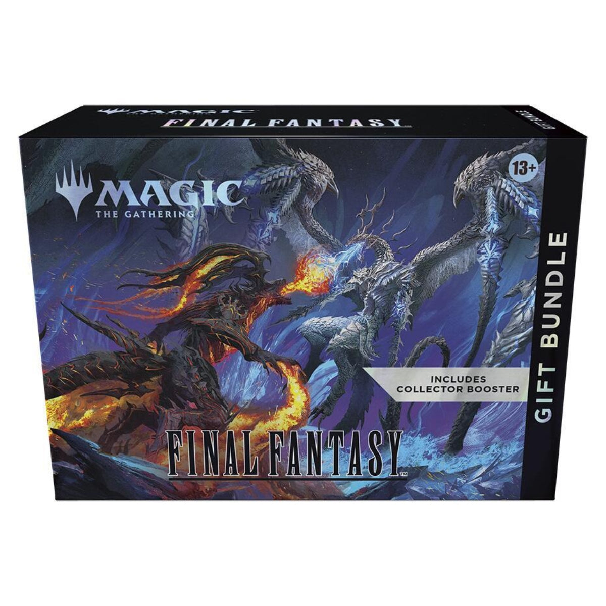This Gift Bundle is the perfect present for Magic and FINAL FANTASY enthusiasts alike. Featuring a full inventory of surprises, fans are sure to smile when they see it-even (especially!) if that fan is you. The Magic: The Gathering-FINAL FANTASY Bundle: Gift Edition contains 1 Collector Booster, 9 Play Boosters, 2 Traditional Foil Extended-Art cards, 16 Traditional Foil and 16 nonfoil Full-Art Basic Land cards, 1 oversized Spindown life counter, 1 special foil FINAL FANTASY card storage box, and 2 reference cards. A serialized card may be found in 0.1% of English-language Collector Boosters only.