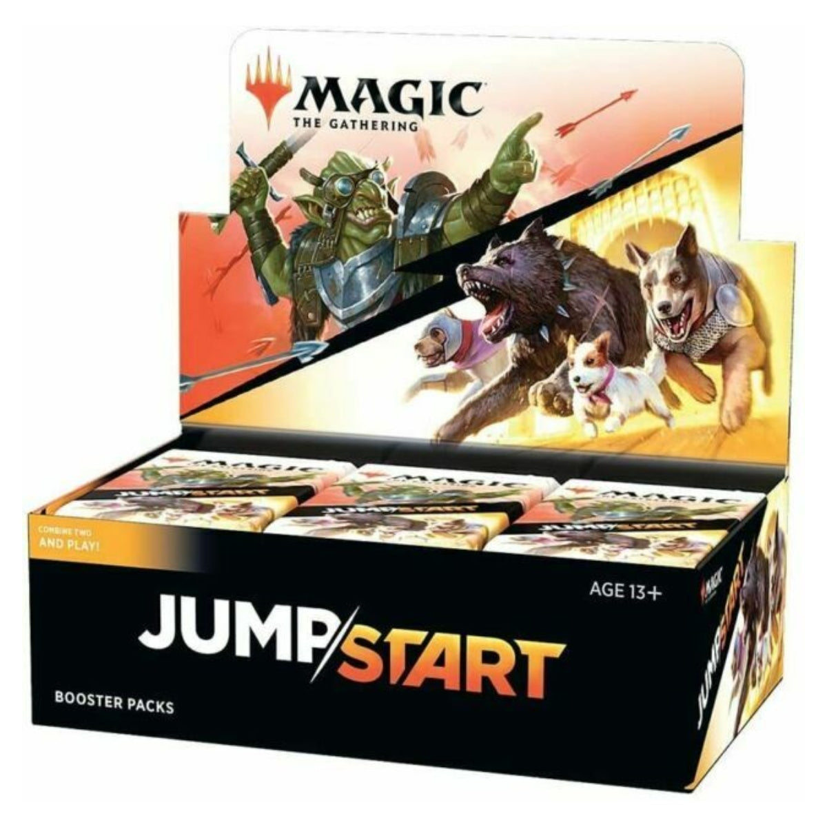 A Magic: The Gathering Jumpstart 2020 Booster Box contains 24 themed booster packs, each with 20 cards (including lands) designed for quick, ready-to-play 40-card decks by combining two packs. It offers a mix of reprinted cards from Magic's history and 37 new cards, providing a unique, fast-paced gameplay experience perfect for beginners and veterans alike to jump into games with minimal setup.