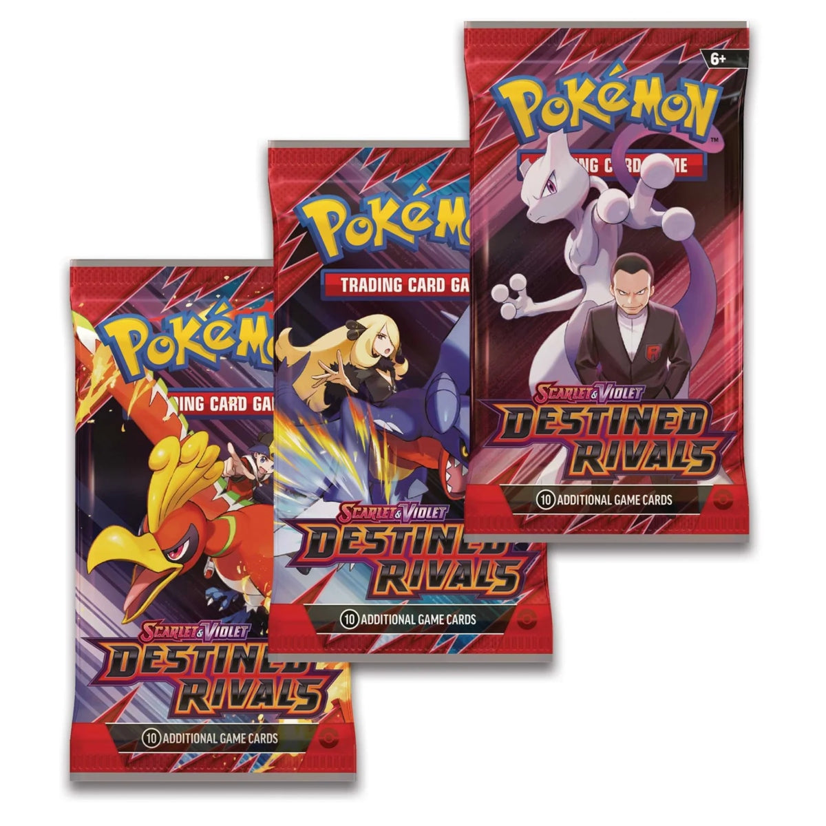 Pokémon Trainers, be on high alert! The nefarious Team Rocket is setting its latest plan into motion, and heroic Trainers are racing to stop it. Join forces with the likes of Cynthia and Garchomp ex, Ethan and Ho-Oh ex, or Arven and Mabosstiff ex... Or reconsider your loyalties and fight alongside Team Rocket's Pokémon like Mewtwo ex-under the command of Giovanni! Choose a side, assemble your allies, and battle boldly in the Pokémon TCG: Scarlet & Violet-Destined Rivals expansion!