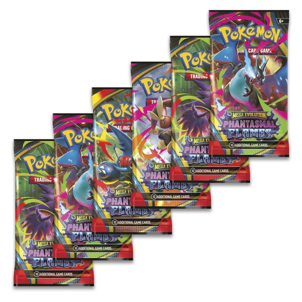 Ignite a Burning Spirit of Battle! Pokémon TCG: Mega Evolution- Phantasmal Flames. Searing blue flames rip across a dark battlefield as Mega Charizard X ex soars up and looks down upon its opponents! With a deep chill to rival the heat, the shadowy figure of Mega Gengar ex slowly rises into view, and both Pokémon prepare to attack. Determined to prove their mettle, Mega Heracross ex, Mega Lopunny ex, and even more Pokémon line up to give it their all in the Pokémon TCG: Mega Evolution- Phantasmal Flames expansion.