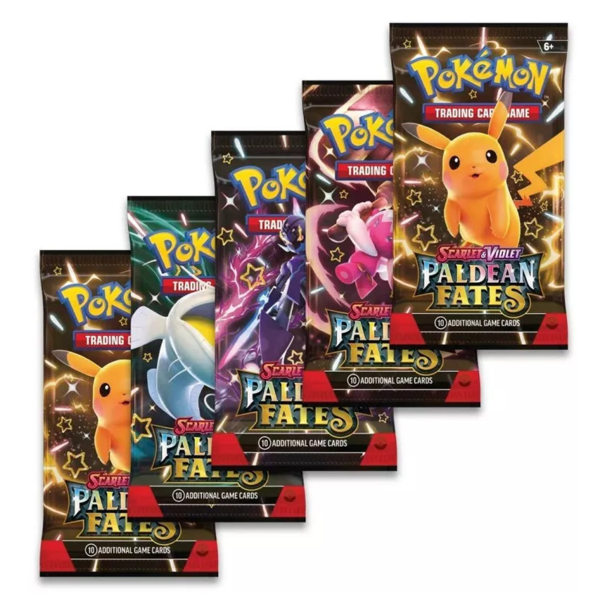 Shiny Pokemon ex in the Spotlight! Behold the breathtaking power of Shiny Pokemon ex who transcend the boundaries of time and type. With this tin receive the burning spirit of Charizard ex as a Darkness-type Tera Pokemon. Then Discover even more aweson cards in Scarlet & Violet--Paldean Fates Booster packs.
